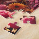 This artwork "Path of Love at Sunset" jigsaw puzzle captures a tender moment shared by two souls walking hand-in-hand down a path adorned with vibrant flowers under the warm glow of a pink sunset. The flowers symbolize the blossoming of love, while the sunset represents the beauty of shared moments and the promise of togetherness.