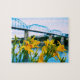 Ponha à prova suas habilidades de fazer de quebra-cabeça com esta foto de flores de verão ao longo da margem do rio Tennessee com a Ponte Walnut Street de Chattanooga ao fundo. quebra-cabeça de serra de 8 x 10 polegadas com 110 peças.