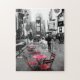Fotografia preto e branco do Times Square na Nova Iorque com acentos vermelhos que capturam seu olhar