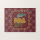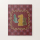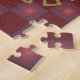 Quebra-cabeça vermelho que caracteriza trabalhos de arte do vetor de partes de xadrez tais como o cavaleiro, o rook, o bishop e o penhor em um fundo com bordas modeladas.