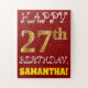 Este quebra-cabeça de aniversário simples e divertido mostra a mensagem "FELIZ 27 ANOS DE ANIVERSÁRIO", com o "27.º" a ter uma aparência falsa e imitada de cor dourada. Também apresenta um nome personalizado e um fundo de cor vermelha. Pode ser uma maneira divertida e especial de dar uma saudação de aniversário personalizada a alguém que comemora seu vigésimo sétimo aniversário. [~Z0000200]