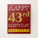 Este quebra-cabeça de aniversário simples e divertido apresenta a mensagem "FELIZ 43º ANIVERSÁRIO", com o "43º" a ter uma aparência falsa e imitada de cor dourada. Também apresenta um nome personalizado e um fundo de cor vermelha. Pode ser uma maneira divertida e especial de dar uma saudação de aniversário personalizada a alguém que comemora seu quarenta terceiro aniversário. [~Z0000200]