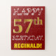 Este quebra-cabeça de aniversário simples e divertido apresenta a mensagem "HAPPY 57th BIRTHDAY", com o "57º" a ter uma aparência falsa e imitada de cor dourada. Também apresenta um nome personalizado e um fundo de cor vermelha. Pode ser uma maneira divertida e especial de dar uma saudação de aniversário personalizada a alguém que comemora seus cinquenta e sete anos. [~Z0000200]
