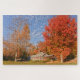 "Vermont Sugar House" por Catherine Sherman. No início do outono, a madeira é empilhada contra uma fábrica de açúcar, pronta para aquecer a seiva da árvore em xarope na primavera. Um Maple vermelho brilhante fica em frente à casa.