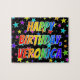 Esta divertida, viva, quebra-cabeça de quebra-cabeça com tema de aniversário tem a mensagem "HAPPY BIRTHDAY, VERONICA" com os personagens que têm um espectro colorido de arco-íris inspirado em um padrão de gradação, junto com uma estrela vibrante molda o plano de fundo. Uma quebra-cabeça vibrante como esta pode ser uma maneira divertida de reconhecer o aniversário de alguém chamado Veronica. [~Z0000468]