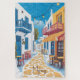 Esta viagem mostra uma ilustração serena e quente representando as ruas de Mykonos, Grécia. É um quebra-cabeça místico para os viajantes que planejam visitar Mykonos ou para aqueles que viajaram para Mykonos.