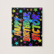 Esta design de quebra-cabeça de quebra-cabeça animada e divertida com tema de aniversário tem a mensagem "HAPPY BIRTHDAY, VICTOR" com os personagens que têm um espectro colorido de arco-íris inspirado em um padrão de gradação, junto com um campo excitante de estrelas como padrão de fundo. Um quebra-cabeça vibrante como este pode ser usado para enviar uma mensagem de saudação de aniversário a alguém chamado Victor. [~Z0000468]