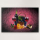 Quebra-cabeça Vidro romântico, garrafa, queijo, uvas, rosa