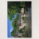 Quebra-cabeça de serra de vaivém do castelo e a vila tradicional catita do Ségur-le-Château com suas casas metade-suportadas ao lado do rio de Auvézère em Limousin, France.