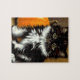 Quebra-cabeça de Jigserra com um gato preto e branco de Halloween! Este gatinho assustador está se posando perto de uma abóbora laranja. Um presente bonito para festas de Halloween e amantes de gatos!