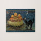 Antiguamente Pumpkins e Gato Assustador do Halloween não é uma imagem de excelente? É um cartão postal de Halloween, de 1909. Devem ter se divertido muito no Halloween no início dos anos 1900. Este cartão de Halloween contém três abóboras assustadoras com rostos engraçados entalados neles. As lanternas jack-o-lanternas estão sentadas numa grande melancia, num assustador campo noturno escuro no Halloween. Há uma lua crescente no fundo, iluminando uma noite assustadora de Halloween. Um gato preto vê as abóboras de jack-o-lanterno, e levanta seu gato assustador de volta. Esta é uma maravilhosa imagem vintage do Dia das Bruxas perfeita para a sua noite de terror de Halloween do ano. Também é excelente para aquele lindo gato de Halloween na sua vida!