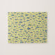 Este quebra-cabeça desafiador apresenta um padrão feito de vários tamanhos diferentes de besouros azul vintage todos marchando em direção ao topo em um fundo amarelo pálido. #quebra- cabeça