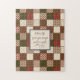 Personalize este quebra-cabeça de padrão de estilo de vintage com o seu próprio texto para um presente exclusivo. Criado em tons de vermelhos escuros, creme e castanho para um olhar rústico com detalhes de pontos de ziguezague falsos. Produto doce para colchetes, costureiras ou qualquer pessoa que tenha gosto por bons desafios de quebra-cabeça.