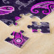 Pincéis roxos e padrões florais únicos e bonitos no estilo legal de vinheta.