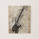 A imagem de um violão estilizada como um lápis desenhando em papel antigo