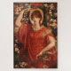 Este design apresenta uma pintura do artista inglês Dante Gabriel Rossetti (1828-1882), que foi o fundador do movimento artístico da Irmandade Pré-Raphaelita. A pintura se inspira nos escritos do poeta italiano Giovanni Boccaccio, em especial na sua representação de Fiammetta, uma musa e amada figura em suas obras. Rossetti apresenta Fiammetta como uma mulher lindíssima, representada aqui num retrato comprido. Ela é mostrada em uma pose de três quartos, sua cabeça gentilmente inclinada para o lado, com seu olhar desviado do espectador. Essa pose, combinada com sua expressão serena, imbui a pintura com um senso de gentil melancolia e introspecção. A face de Fiammetta é enquadrada por uma cascata de cabelos ricos de auburn que desagua sobre os ombros, um detalhe característico na representação feminina de Rossetti. Fiammetta está vestida com um luxuoso e profundo vestido vermelho que se destaca vividamente contra o fundo. A rica cor de seu vestido simboliza paixão, amor e uma sensualidade intensa, alinhada aos temas da pintura. Fiammetta segura os ramos de uma árvore em suas mãos, e esses ramos estão florescendo com lindas flores cor-de-rosa. Há também um pássaro vermelho voando acima da cabeça de Fiammetta. A obra de arte original foi pintada por Dante Gabriel Rossetti em 1878.