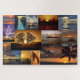 Ponha as suas habilidades de fazer à prova com esta colagem de tiros de pôr do sol de destinos em todo o mundo... Kona, Havaí... Londres... o Cinque Terre... Flórida... Califórnia.. o mar irlandês... as Montanhas Rochosas do Colorado... e mais. quebra-cabeça de serra de 20 x 30 polegadas com 1.014 peças.