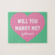 Este quebra-cabeça de quebra-cabeça apresenta um coração cor-de-rosa moldado sobreposto pelo texto do modelo: "Você me casado? (por favor)" Se está à procura de uma forma especial para pop a pergunta, surpreenda o seu amante ao Dia de os namorados, ou qualquer dia, com uma proposta única sob a forma de um quebra-cabeça de serra. Personalize com seu namorada ou namorado e personalize a escolha da fonte, o tamanho e a cor. Escolha a sua própria cor de fundo.