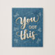 Você tem esta quebra-cabeça única de quebra-cabeça com uma mão feita design de citação inspiradora em estilo azul-chic. O design artesanal acrescenta um toque artístico que transforma o quebra-cabeça em uma bela peça de arte. Ele faz um presente de excelente para um entusiasta do quebra-cabeça ou amantes do quebra-cabeça na sua vida. Relaxe, divirta-se e lembre-se sempre... Você tem isso!