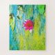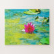 Um lírio de água fuchsia com folhagem de verde limão em água turquesa faz um quebra-cabeça de quebra-cabeça inspirado em Monet.