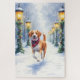 Celebrate the season with this delightful Christmas card featuring a cheerful Beagle exploring a festive snowy park. Decorated lampposts, soft winter lighting, and gentle snowfall create a charming watercolor scene perfect for dog lovers. The blank interior offers room for personal messages, making it ideal for holiday greetings, thoughtful gifting, and breed-inspired stationery collections.