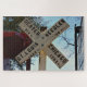A vintage railroad distance sign in Kingman, Arizona displays mileage to cities like Denver, Chicago, and St. Louis. Positioned beside a historic train, the sign reflects the long distances and connections of classic American rail travel.