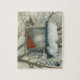 a northern cardinal and friend enjoy breakfast on a snowy morning; my photograph converted to watercolor style using AI