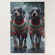 This festive design captures the joyful spirit of the holiday season, featuring an adorable dogs.Nestled in a winter wonderland, complete with a decorated Christmas tree, and beautifully wrapped presents. Snowflakes gently fall, adding a magical touch to the scene, while the vibrant colors of the holiday decorations create a warm and cheerful atmosphere.