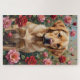 Quebra-cabeça Yellow Labrador Dog Valentine's Day Rose Field