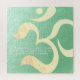Instrutor de Meditação Yoga Studio / Treinador de Vida / Healer / Mestre Reiki / Terapêutica Massage cita Quebra-cabeça . Modern Faux Gold Foil Om Símbolo em Fundo Verde de Textura em Folha de Ouro. — Om representa a energia infinita da divindade e mostra como podemos todos viver num mundo de harmonia.
