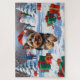 Um Yorkipoo brincalhão corre alegremente através da cena de inverno nevado, vestindo um chapéu de Natal vermelho festivo. Este adorável design destaca a casaco, expressão brilhante e personalidade afetuosa da raça enquanto capta o calor e a alegria da época de férias. Um maravilhoso momento de inverno cheio de alegria festiva.