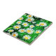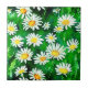 Azulejo cerâmico em padrão aquoso de margaridas brancas com centros ouros amarelos, sobre fundo verde-pastoso