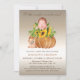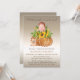 Este convite de chá de fraldas para casais de outono bonitinho e moderno apresenta uma abóbora brilhante de bronze com girassol de cor d'água e um bebê bonitinho no topo com uma coruja ao lado em um fundo de champanhe. Na moda e chic #babyshower #acoesbabyshower #babyshowerCalls #babyshower #conventions #convida #babygirl #babyboy #genderneutro #fofinho #stationery #baby #personalizedasconvites #personalizado