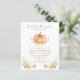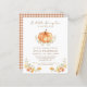 Celebre o seu bebê que vai cair em breve com os seus amigos e família para partilhar a alegria da sua pequena chegada com este convite para chás de fraldas, com uma abóbora a aquarela, folhagem de outono e um padrão de xadrez marrom alaranjado nas costas.