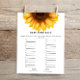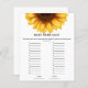 Prepare-se para divertir-se com o nosso jogo de Chá de fraldas Race de Nome de Cachorro de Girassol, uma atividade encantadora para a sua celebração! Neste jogo, os convidados correrão contra o relógio para aparecerem tantos nomes de bebês por alfabeto no tempo alocado. Aquele com mais nomes ganha um doce prêmio! Feito com girassol encantador, este jogo adiciona um pouco de doçura às suas festividades de chá de fraldas. É perfeito para manter convidados entretidos e noivos enquanto celebra a chegada do seu pequeno. Quer você esteja hospedando uma pequena reunião ou uma grande festa, todos vão gostar de participar desse jogo divertido e excitante. Com o nosso jogo de Chá de fraldas Race de Nome Floral de Girassol em Queda, você pode adicionar um toque de diversão e riso à sua celebração enquanto cria memórias duradouras com seus entes queridos. Que a corrida comece!