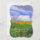 Céu azul profundo com nuvens dramáticas sobre uma colina brilhante com cor de queda. No primeiro plano, árvores ainda se mantêm em sua nítida cor verde. Texto personalizável na frente: "Queda—que excelente tempo para ser nascer!" e no verso, "Feliz Aniversário, Meu Amigo".
