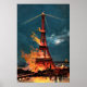 Esta incrível imagem da Torre Eiffel embrulhada em chamas foi usada num cartão comercial francês usado para pedalar elixires durante o tempo vitoriano. O marco foi construído para a Feira Mundial de Paris em 1889. Fui procurar informações sobre este acontecimento dramático e pude encontrar muito pouco. Talvez o artista do cartão tivesse uma imaginação muito viva. A ilustração dominante mostra cores muito vívidas e contraste poderoso. É uma imagem difícil de ignorar.