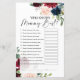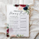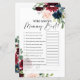 Quem Conhece Mais Mamães? Cartões de jogos de chá de fraldas no tema floral de boho burgundy