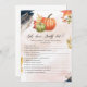 Projetado para nossa coleção de Chás de fraldas Pequenos Pumpkin, este personalizável Cartão de Melhor Jogo Quem Conhece o Pai apresenta fundo cor-de-rosa pincelado, abóbora verde e laranja, texto brilhante rosa e folhas douradas com fontes de escrita manual. Itens correspondentes disponíveis.