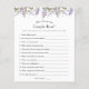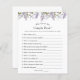 Cartão de caça de chá de panela com aquarela verde e flores roxas. Uma maneira divertida de interagir com convidados de chá.