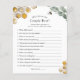 Cartão de caça com chá de panela com aquarela eucalipto verde e abelhas para corresponder à Coleção de Abelhas do Ouro. Uma maneira divertida de interagir com convidados de chá.
