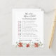 Este cartão de jogo de chá de fraldas apresenta belas florais de inverno de cor aquosa, em tons de vermelho e branco, que são balanceados com verde-luxuoso, fazer-o uma paleta quente e arejada. Altere a cor de fundo ou adicione gráficos para corresponder ao tema do chá. Precisa coordenar gráficos, entre em contato comigo para obter um pedido personalizado. Claro que não é necessário que você jogue jogos no chá de fraldas, mas considere isso: Você terá um grupo de todas as idades, e a maioria dos convidados provavelmente nunca se conheceram antes da festa. Misturar alguns desses jogos clássicos de chá de fraldas é uma maneira perfeita de quebrar o gelo. Essas placas projetadas profissionalmente são rapidamente personalizáveis. Adicione seu texto personalizado a este design usando as caixas "Editar este modelo design" no lado direito do item, ou clique no botão azul "Personalizar" para organizar o texto, alterar as fontes e cores e também adicionar informações ou imagens adicionais a este design. Clique em "Personalizar mais" para abrir as opções de edição de cheio. Se você precisar de algum item de coordenação (cartões de agradecimento, etc.), entre em contato comigo para obter um pedido personalizado. ****Para pedidos personalizados com os quais necessita da minha ajuda, não coloque esta mercadoria no carrinho. Em vez disso, envie-me um e-mail com sua solicitação em lauralise@iyhtvdesigns.com Um link para sua mercadoria será enviado a você por e-mail assim que o item estiver disponível. Você pode usar esse link para fazer seu pedido. Por favor, aguarde até 48 horas.