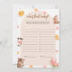 Este adorável Cartão de Jogo de chá de fraldas apresenta um tema fazenda charmoso com ilustrações bonitinhas de uma vaca, coelho, pintinho, cavalo e porco, cercado por flores alegres e um sol sorridente. As cores pastel suaves e a design branca criam uma atmosfera quente e convidativa. Visite o nosso compro para ver toda a nossa coleção de animais de Fazenda castanha-branca.