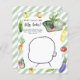 "Bebê crescido localmente a caminho". Celebre com esta festa de chá de bebê temática de vegetais em aquarela! Pepino, cebola, berinjela, abobrinha, tomates amarelos e vermelhos em aquarela, rabanetes, cenouras, pimenta malagueta, pimentão amarelo doce, ervilhas e repinho, brócolis e beterraba em uma tábua de corte. Colheita orgânica em aquarela.