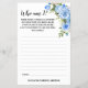 Quem sou eu? Cartão de Jogo Flores Azuis do chá de