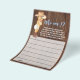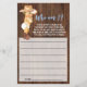 Cartão de Jogo de Chá de Bebê "Pequeno Cowboy Quem Sou Eu". Altere a palavra para o design. Para alterações adicionais (cor da fonte, estilo da fonte, remover ou mover elementos), clique em personalizar, role para baixo e clique no link "Editar usando a Ferramenta de Design". ** O fundo de madeira está incorporado ao design para ser impresso em papel branco. ** - Verifique a coleção para todos os designs correspondentes - COMO JOGAR: Os convidados escrevem uma memória pessoal que têm com a futura Mamãe. A Noiva lerá cada cartão e se ela não conseguir se lembrar do convidado; esse convidado ganha um prêmio!