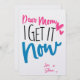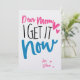 Querida Mãe, Agora Entendo, Cartão De Dia de as mães Personalizado. Engraçado, carta especial para a mãe. Cartão de Dia de as mães personalizado com Engraçado Dizendo, slogan "Querida mãe, eu entendo agora", letra impressão design a rosa com belos corações, cor-de-rosa e gráfico azul. Linda combinação de cores rosa e azul. Você pode personalizar com seu nome e mensagem ou nomes personalizados na frente ou na parte traseira do cartão. Placa imprimível ou descarregável eletrônico. Download instantâneo. Diverte-te a dar à mãe o cartão de dia de as mães mais fixe. ou cartões de convite para todos os outros eventos e dias.