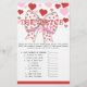 Torne seu chá de fraldas mais divertido com nosso Um Pouco Mais Bonito. O Preço É Certo. Apresentando um arco de coquete encantador com um padrão cardíaco vermelho cercado por corações cor-de-rosa e vermelho, este cartão de jogo traz charme e entusiasmo para sua celebração. Os convidados vão adivinhar os preços dos itens para bebês para uma oportunidade de ganhar, e você pode personalizar a lista de itens para bebês para se adequar ao seu evento. Perfeito para um chá de fraldas de menina, um partido neutro em relação ao gênero, ou mesmo um chá de fraldas temático do Dia do Namorados, este jogo é uma maneira divertida de engajar convidados e criar memórias duradouras. Par com itens correspondentes da nossa coleção A Little Swetheart para completar o seu tema coordenado!