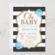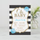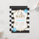 Querida, Black e Dourado Convite para Chás de fraldas. Dourada Glitter. Convite para Chás de fraldas. Black and White Stripes. Flor Floral Azul. Para mais personalização, clique no botão "Personalizar" e use nossa ferramenta de design para modificar este modelo.