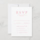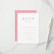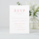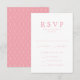 Nossos cartões de resposta de casamento "Querido" apresentam uma paleta de cores clássica de rosa e branco que é perfeita para casamentos em qualquer época do ano. O verso dos elegantes cartões de RSVP de casamento apresenta um design tradicional de padrão ligado. Personalize os cartões de resposta de casamento elegantes com seus detalhes personalizados de casamento e opções de jantar!
